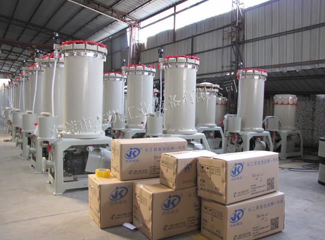 過(guò)濾機(jī)按其適用的工藝過(guò)程和處理功能可分為鍍前溶液除油過(guò)濾機(jī)和電鍍(化學(xué)鍍)過(guò)濾機(jī)兩大類。 過(guò)濾機(jī)按其配置的防腐蝕泵的類型可分為磁力泵和機(jī)械泵形式,磁力泵適用于固體懸浮物較少且沒(méi)有鐵磁金屬微粒的溶液連續(xù)過(guò)濾,其優(yōu)點(diǎn)是只要塑料隔離套不破壞就無(wú)泄漏可能。