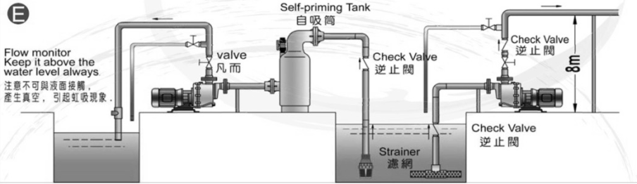 杰凱自吸泵的主體采用PVDF與FRPP材質(zhì),主體與上方自吸筒一體射出成>型,決無(wú)任何焊接點(diǎn),所以絕不泄漏。前自吸筒采用PVDF與FRPP材質(zhì),自吸筒與法蘭一體射出成型,絕無(wú)焊接,更強(qiáng)化本產(chǎn)品耐用性,所以絕不泄漏。前自吸筒分為長(zhǎng)自吸與短自吸配長(zhǎng)自吸筒加球閥時(shí)一定要問(wèn)清楚客戶的過(guò)濾機(jī)是用哪家的,因?yàn)椴煌瑥S家制作的過(guò)濾機(jī)連接自吸泵的尺寸是不一樣的。