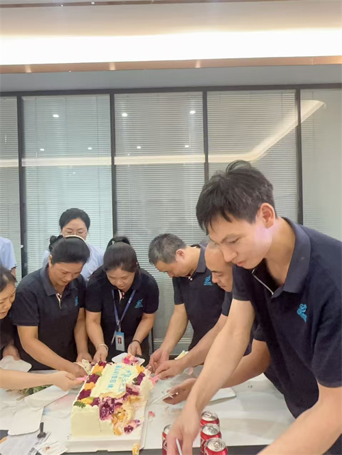 壽星們一同切開了象征甜蜜與分享的蛋糕。這一刀,切開了幸福的滋味,也切開了與所有同事分享快樂的通道??諝饫飶浡逃偷南闾鸷痛似鸨朔臍g笑聲,每一個鏡頭定格下的,都是一張張燦爛的笑臉。