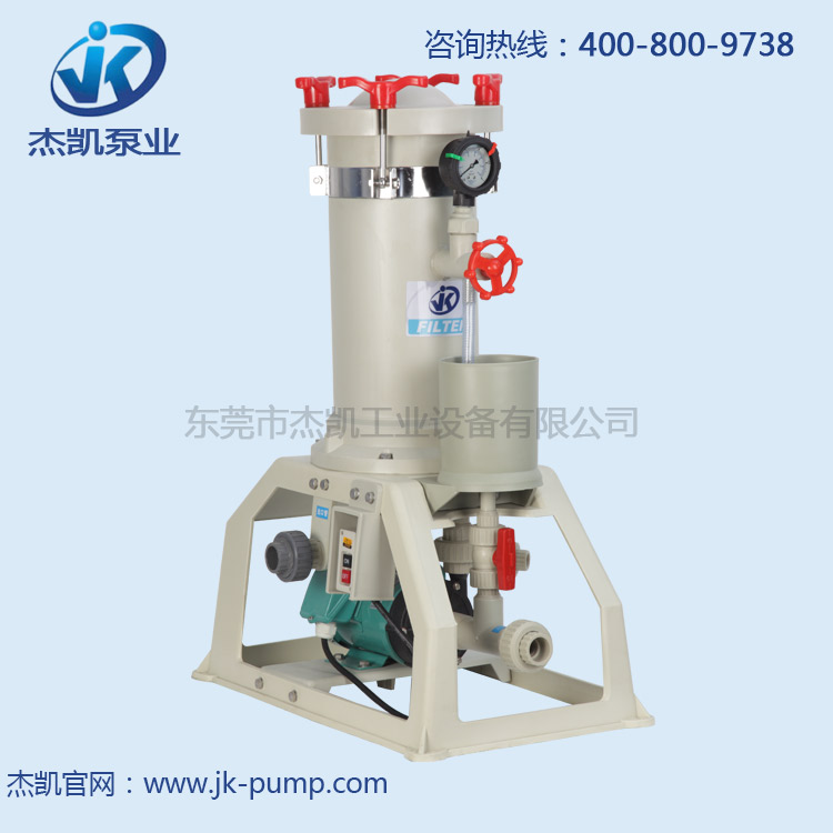 杰凱化學藥液過濾機使用范圍廣,被廣泛應用于電鍍、表面處理、金屬精飾、PCB蝕刻設備、制藥環(huán)保等,其主要作用是過濾化學溶液,能去除這些溶液中的不溶性顆粒雜質。 一體成型的最大好處就是可以最少的減少藥液的泄漏以至無泄漏,為電鍍廠節(jié)省成本,提高效益.