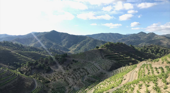 普里奧拉托產區四面環山,大多數葡萄藤種植在海拔183-1,000米的梯田周圍。受地中海氣候的影響,這里夏季炎熱干燥而又漫長,冬季寒冷,降雨量非常少。土壤以含有少量云母的紅色板巖(Llicorella)為主,這種土壤有助于反射和保存熱量,為葡萄緩慢發展成熟創造了理想條件。歌海娜(Grenache)和佳麗釀(Carignan)是普里奧拉托主要種植的紅葡萄品種,二者經常一起混釀。