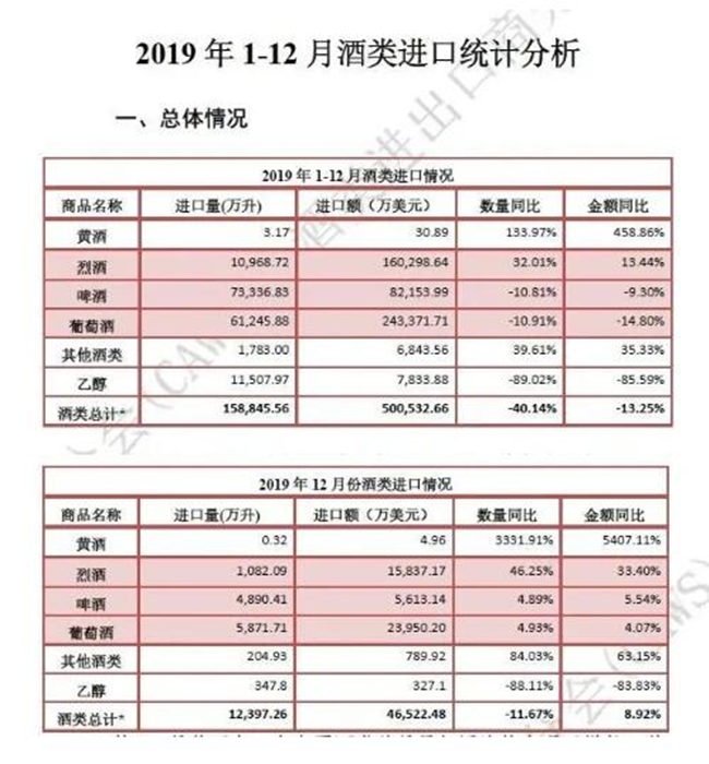 日前,中國食品土畜進出口商會酒類進出口商分會發(fā)布了最新的酒類進口數(shù)據(jù)。