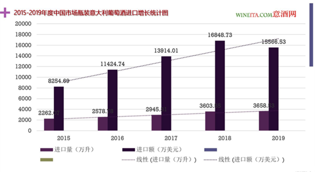 為了方便業(yè)內(nèi)人士更好的理解意大利酒近五年來的成長,意酒網(wǎng)將2015-2019年中國進口瓶裝葡萄酒統(tǒng)計數(shù)據(jù)重新整理,將五年來意大利葡萄酒的進口量、進口額、均價和市場份額進行對比,得出上圖的2015-2019年度瓶裝意大利葡萄酒進口增長統(tǒng)計表。