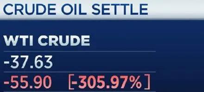 當(dāng)?shù)貢r間4月20日,WTI 5月原油期貨結(jié)算價收報-37.63美元/桶,歷史上首次收于負(fù)值,新冠疫情所導(dǎo)致的需求崩塌無疑是關(guān)鍵原因。