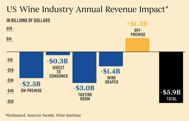 根據(jù)美國葡萄酒行業(yè)專家Jon Moramarco發(fā)布的報告顯示,受疫情影響,美國超過10000個酒莊和8000多個葡萄種植者在2020年收入損失可能達(dá)到59.4億元。