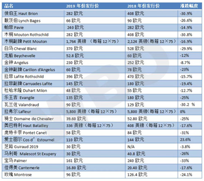 1、名莊期酒價格:平均跌幅20%