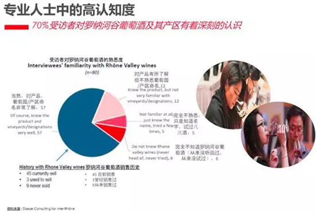 一個產(chǎn)區(qū)在一個市場發(fā)展的好,除了來自該產(chǎn)區(qū)的葡萄酒本身的品質(zhì)、性價比這些自身條件外,市場對來自該產(chǎn)區(qū)的產(chǎn)品的認知同樣非常重要。特別是行業(yè)內(nèi)的專業(yè)人士,自身對產(chǎn)區(qū)了解足夠深入,在向消費者推薦的時候才更游刃有余,才能將產(chǎn)區(qū)的優(yōu)勢更好的傳達給消費者,從而帶動整個產(chǎn)區(qū)在中國市場的發(fā)展。這一點在羅納河谷葡萄酒也有一個非常好的體現(xiàn),據(jù)羅納河谷葡萄酒產(chǎn)區(qū)協(xié)會的一項調(diào)研數(shù)據(jù)顯示,超過70%的專業(yè)受訪者對羅納河谷有著深刻的認識,這無疑就對羅納河谷葡萄酒在中國的發(fā)展帶來了極大的推動作用。而從消費者端的調(diào)研數(shù)據(jù)來看,羅納河谷葡萄酒已經(jīng)擁有了超過30%的認知度。