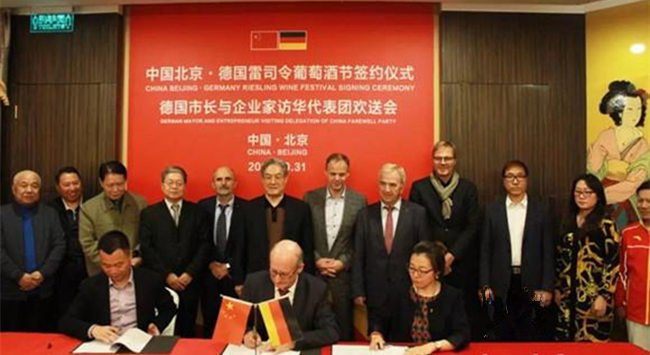 近日,德國市長與企業(yè)家訪華團一行在圓滿完成了北京考察和調(diào)研工作后,來到王府井全聚德紫云花廳,就“德國雷司令葡萄酒節(jié)”落戶北京相關(guān)事宜進行了座談,會后中德雙方代表還舉行了“德國雷司令葡萄酒節(jié)”簽約儀式。