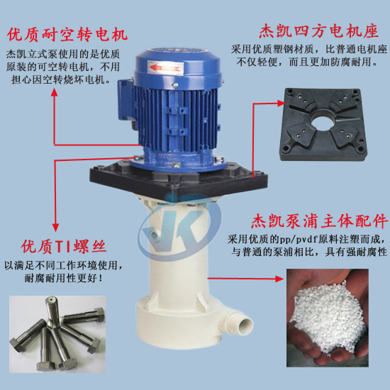3、JKT 耐酸堿液下泵適合各種酸堿液循環(huán)、冷卻、噴洗設(shè)備,廢氣塔、蝕刻機、化學(xué)鍍、無電解鎳等特殊場合;